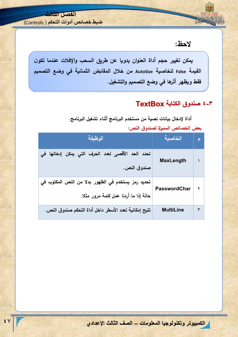صندوق الكتابة TextBox - الكمبيوتر وتكنولوجيا المعلومات 1 - ثالث اعدادي